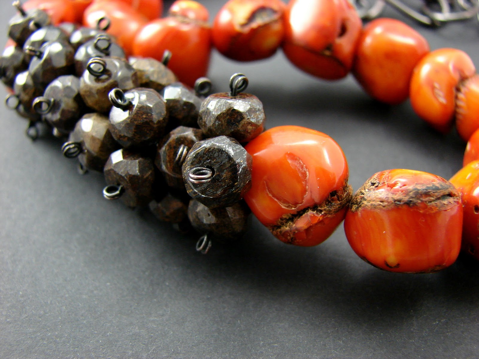 Koral robaczywka, fasetowany brązyt, dodatki z oksydowanej na grafit miedzi...
